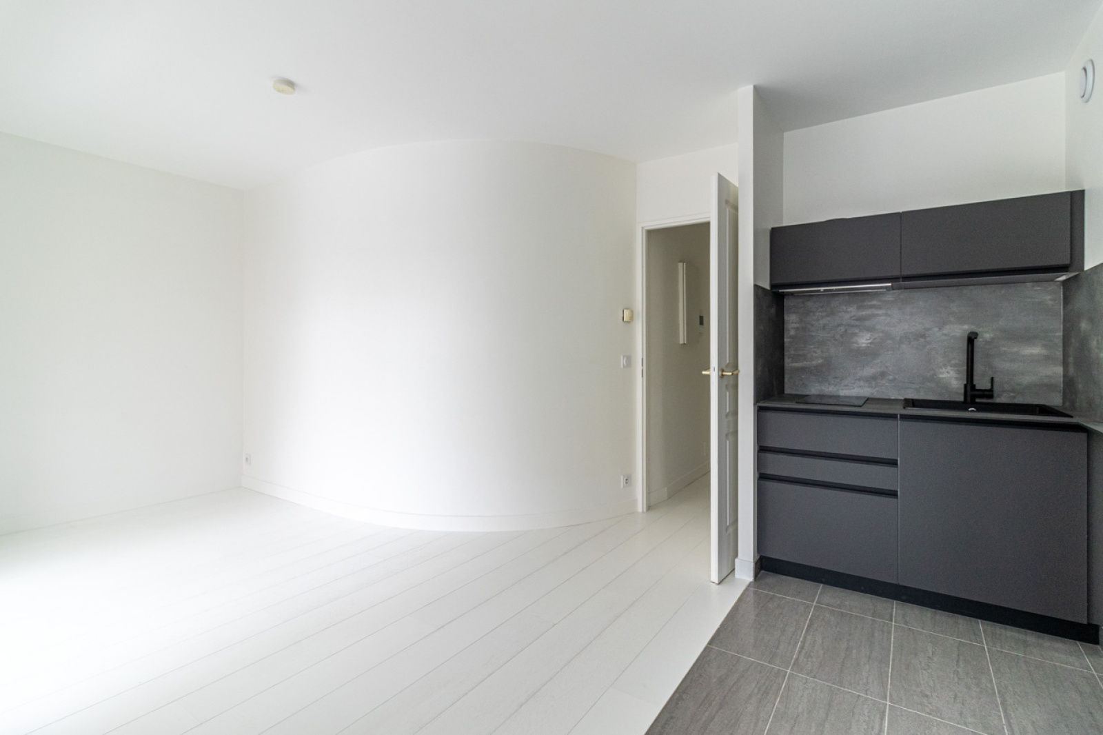 Il se compose d’une entrée élégante, d’une superbe pièce de vie baignée de lumière ouvrant sur un balcon, offrant une vue dégagée sur une rue piétonne, d’un coin cuisine aménagé ainsi que d’une salle d’eau contemporaine avec WC.