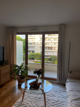 À proximité du métro Pont de Levallois, dans la résidence de grand standing Palais de Seine, sécurisée avec gardien, digicode et visiophone, ce deux-pièces traversant (est / ouest) se compose d’une entrée, d’un grand séjour donnant sur un balcon avec vue sur le jardin intérieur de la résidence, d’une cuisine équipée, d’une chambre avec rangements et balcon, d’une salle de bains et d’un WC avec lave-mains.