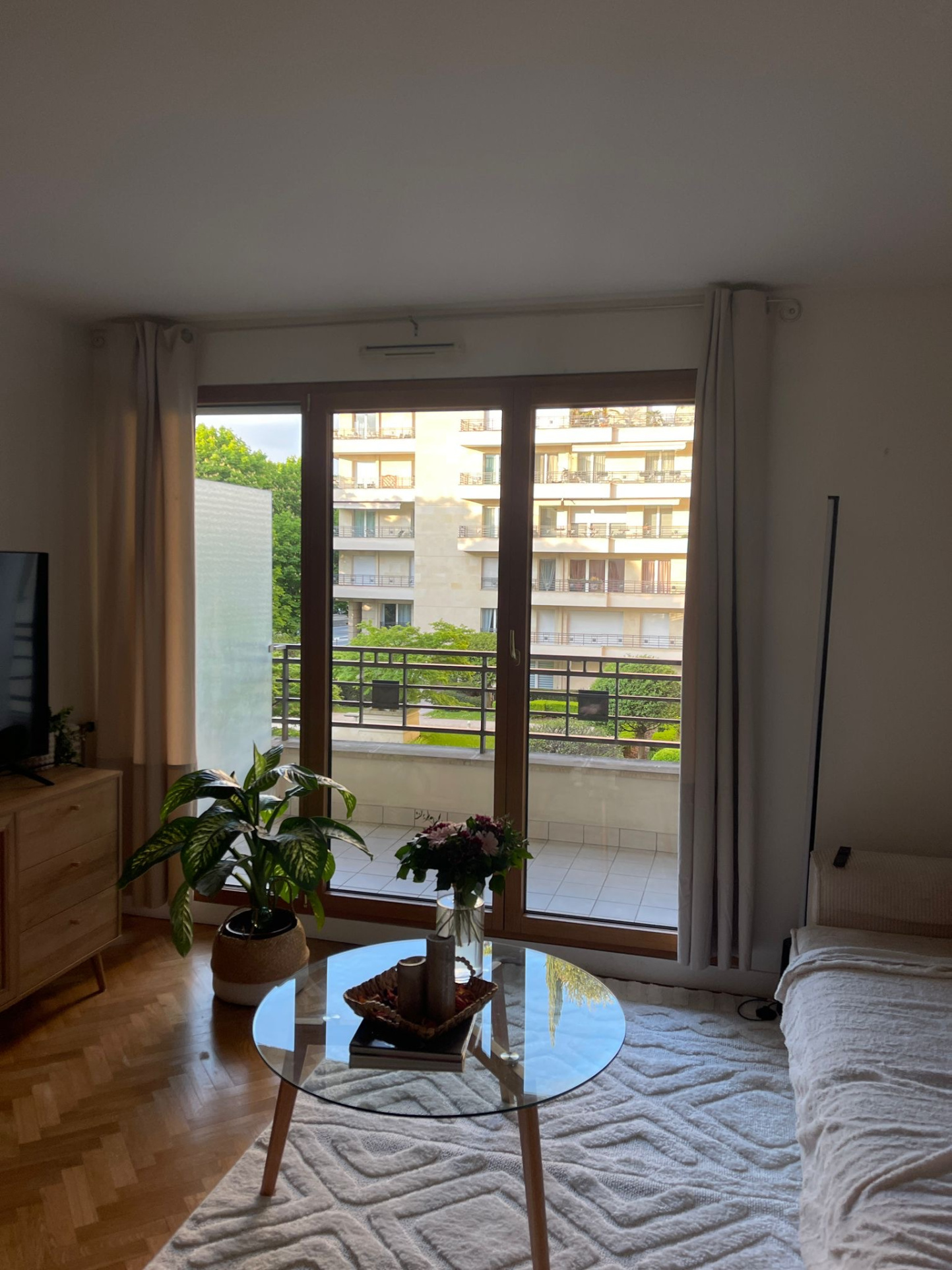 Dans un bel immeuble récent de standing, sécurisé avec gardien, digicode et interphone, appartement composé d’une entrée, d’un séjour avec accès à un beau balcon, de deux chambres avec rangements, également accessibles par le balcon, d’une salle de bains, d’une cuisine et de toilettes séparées.